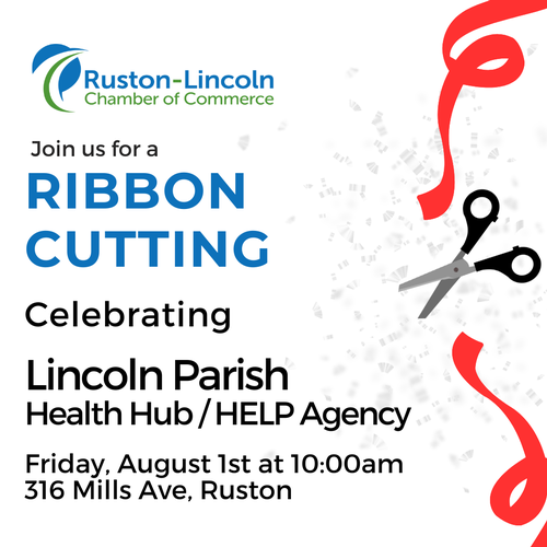 Please join us for a ribbon cutting to celebrate the new Lincoln Parish Health Hub and HELP Agency building on Friday, August 1st at 10:00am located at 316 Mills Ave, in Ruston.